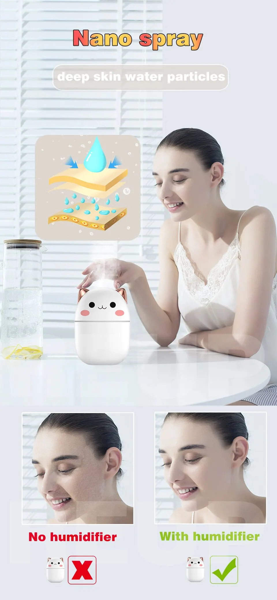 6. Nano Spray: soft and fine mist, soft and refreshing ultrasonic molecular atomization, fine water molecular spray, continuously moisturizing continuously, moisten every inch of skin.
