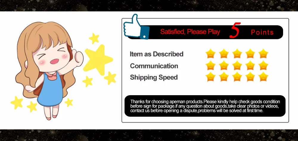 • Your satisfaction and positive feedback is very important to us.  Please leave positive feedback and 5 stars if you are satisfied with our items and services.Thank you.