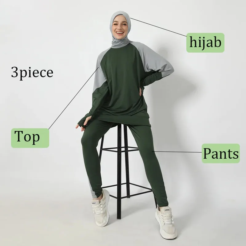 Muslim Sport Wear Sets For Woman Sports Hijab Islamic Women Fashion Clothing Blouse Modest Long Sleeve Tops Pants Casual Clothes