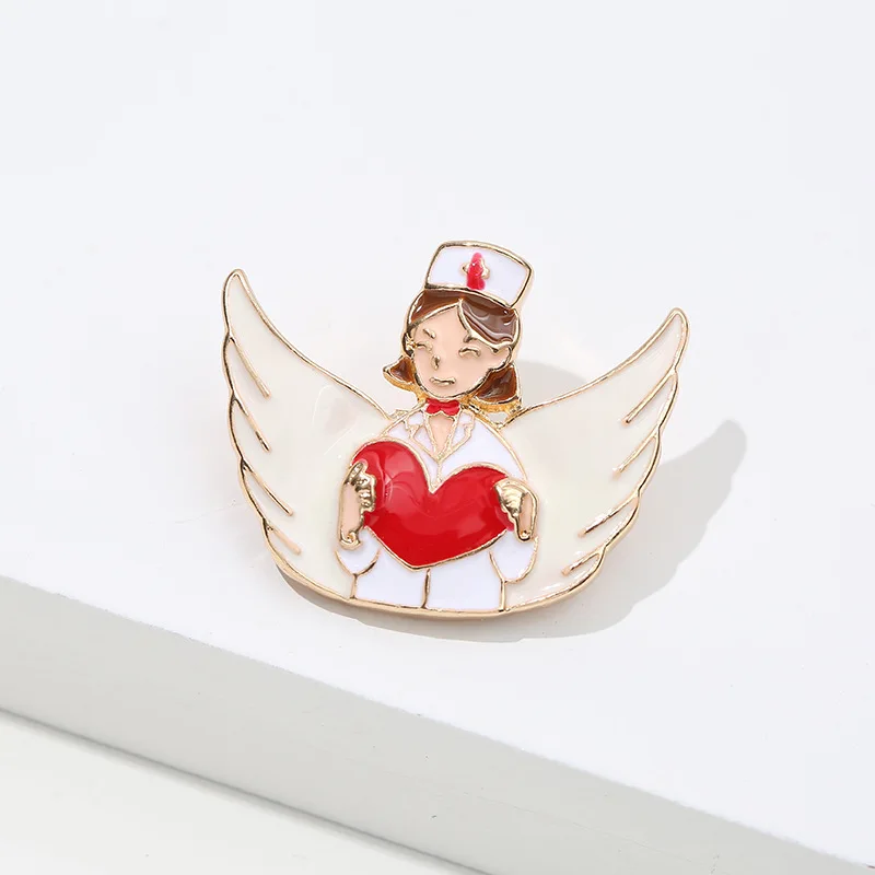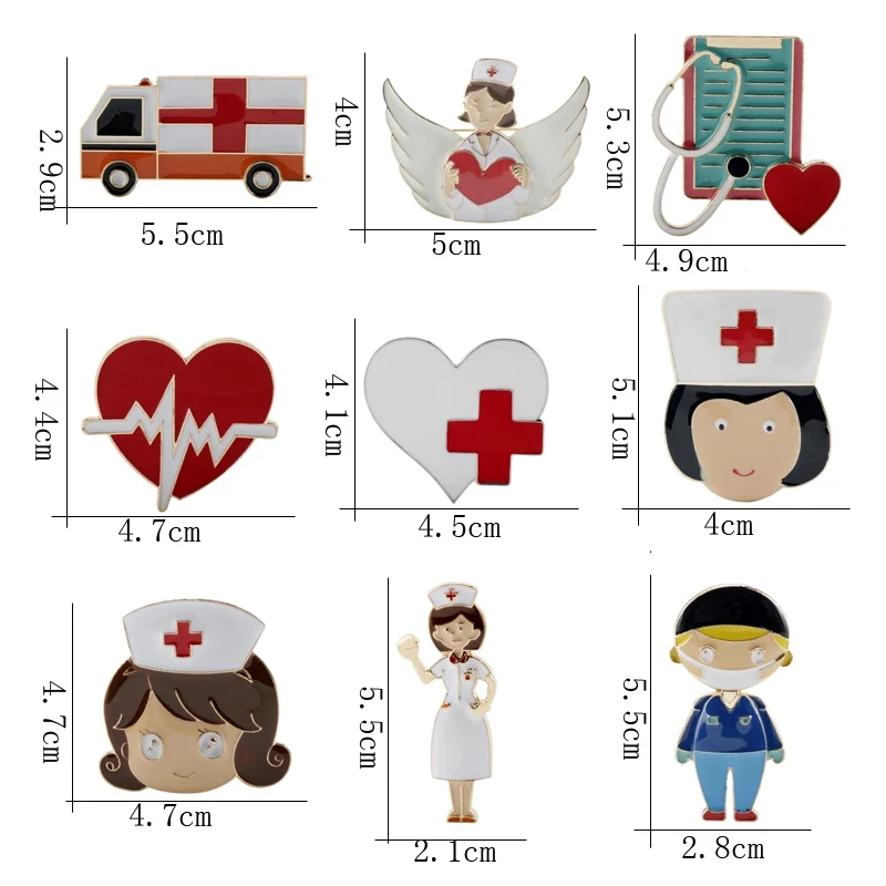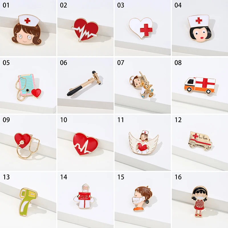 New Medical Medicine Brooch Pin Stethoscope Electrocardiogram Heart Shaped Enamel Metal Pin Nurse Doctor Backpack Lapel Jewelry