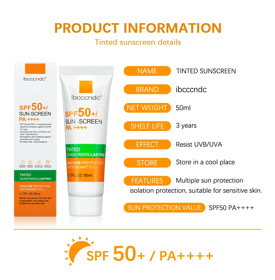 ibcccndc UV Daily SPF 50 Tinted Sunscreen Moisturizer Face Lotion with Hyaluronic Acid Broad Spectrum Hydrating Non Greasy 50g