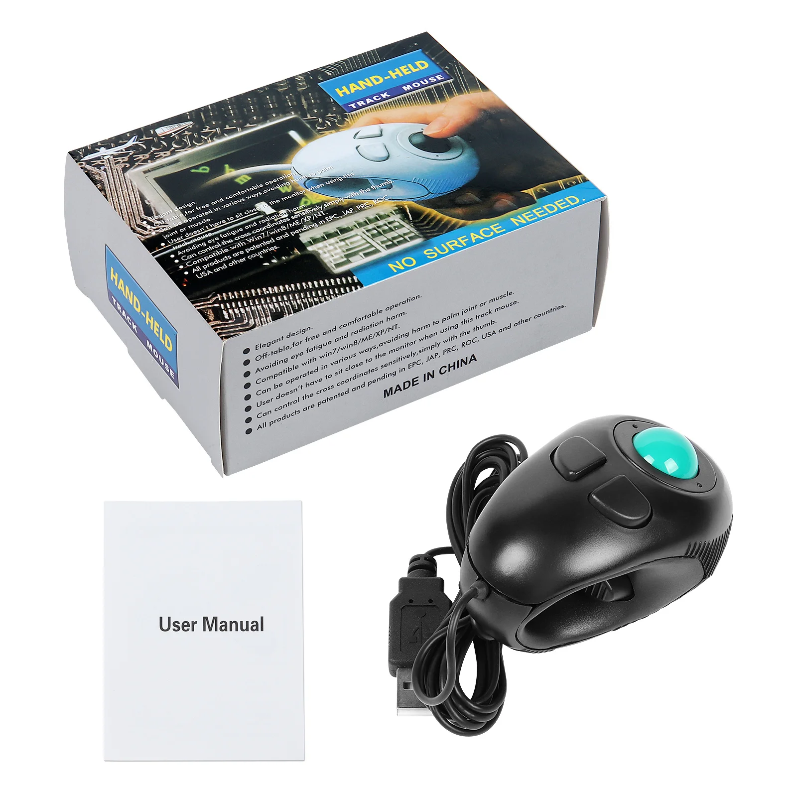 Control the track ball for moving cursor and press the right and left button with your thumb