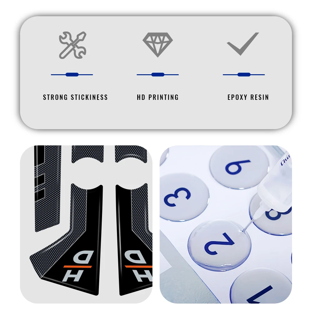 Adesivos de resina de gel 3d eles decoram e reparam o tanque de seus solavancos e arranhões, resistem à lavagem, mau tempo e raios uv.