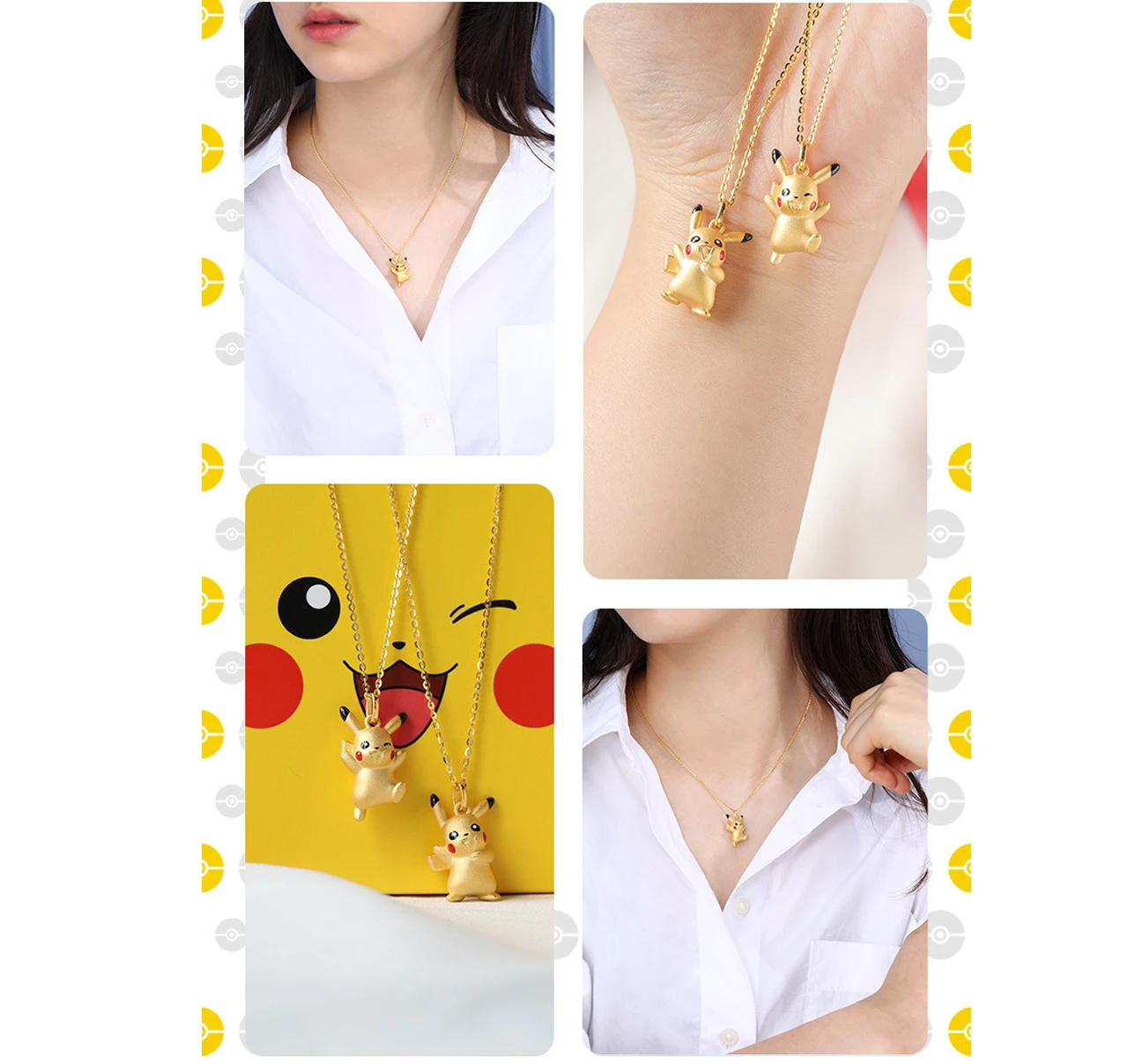 Pokemon GO Pikachu Necklace Charm Cartoon Anime 3D Action Figure Toys Clavicle Chain Y2K Jewelry Kids Women Birthday Kawaii Gift