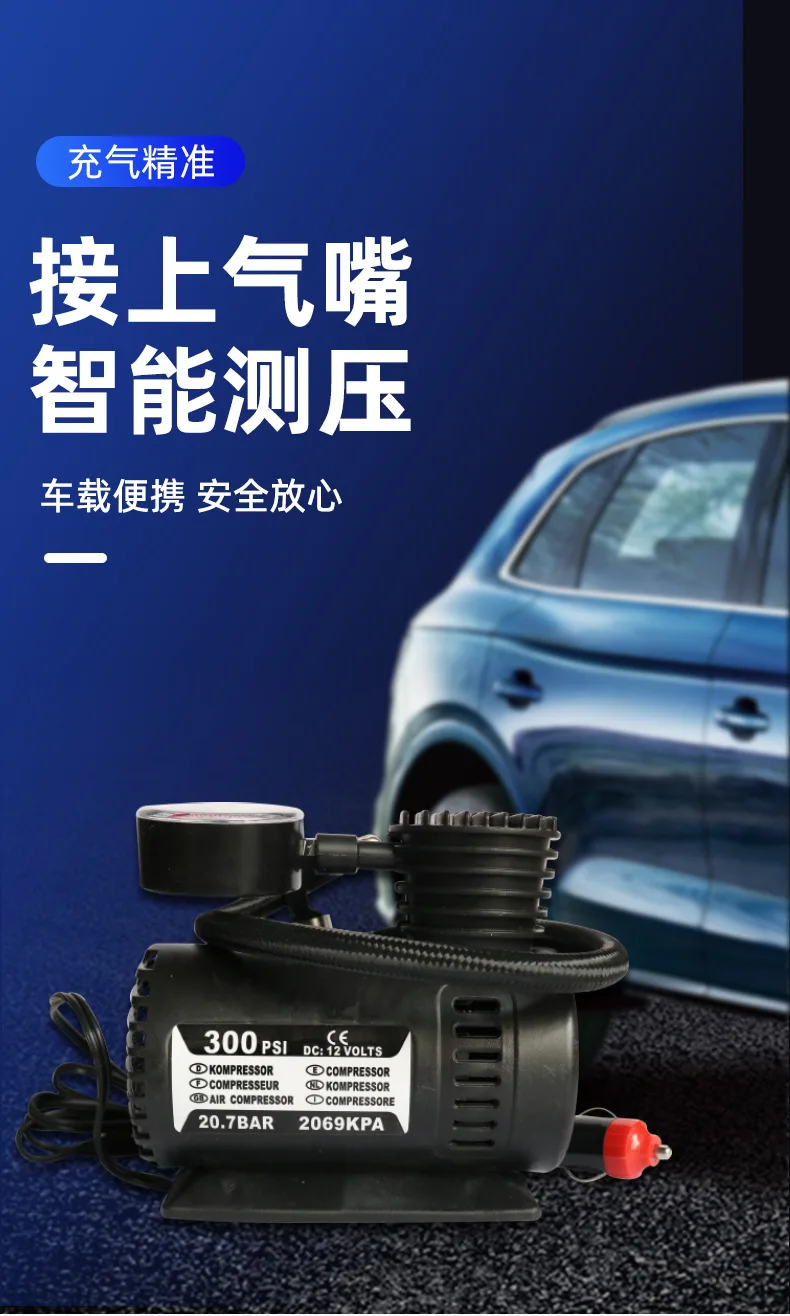 Locomotive Type 12V Portable 300psi Car Mini Air Compressor Pump Automobile Tire Tyre Inflator Pump for Auto Bicycle Motorcycle Kayak Black Specification: Name: Micro Locomotive Air Pump Material: ABS Colour: Black Voltage: 12V-24V Power cord length: 300mm Power: 60w Trachea:approx.45cm Air flow: 15LPM Power Type: Cigarette Lighter MAX PSI: 300PSI Product size: 165*125*85mm Weight: 350g Applicable: Quickly inflate for cars, bicycles, motorcycles, kayaks, balls, etc., simple, convenient and practical. (Not applicable to trucks and large trucks) Tips: Please start the car first and then plug in the cigarette lighter. If you plug it in first and then start it, it may directly burn the product, remember!!! Due to the different monitor and light effect, the actual color of the item might be slightly different from the color showed on the pictures. Thank you! Please allow 1-2cm measuring deviation due to manual measurement. 1*Air pump