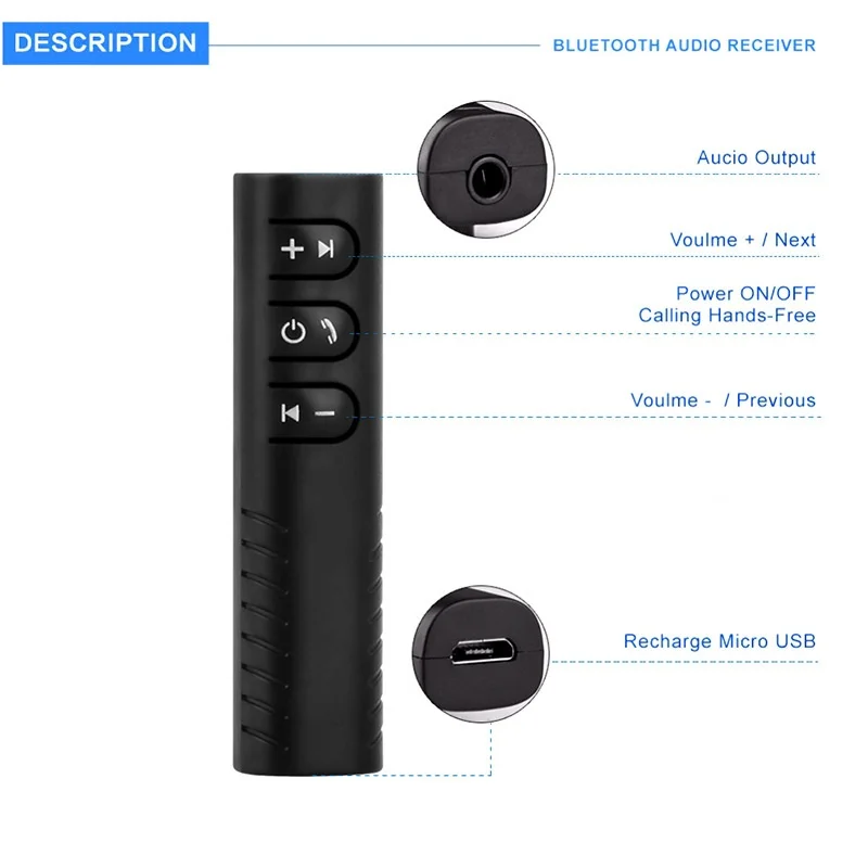 Functions: Volume and Play Control; Turn Non-Bluetooth devices to Bluetooth-Enabled for Connecting headphones, connecting mobile phones, connecting speakers, connecting cars