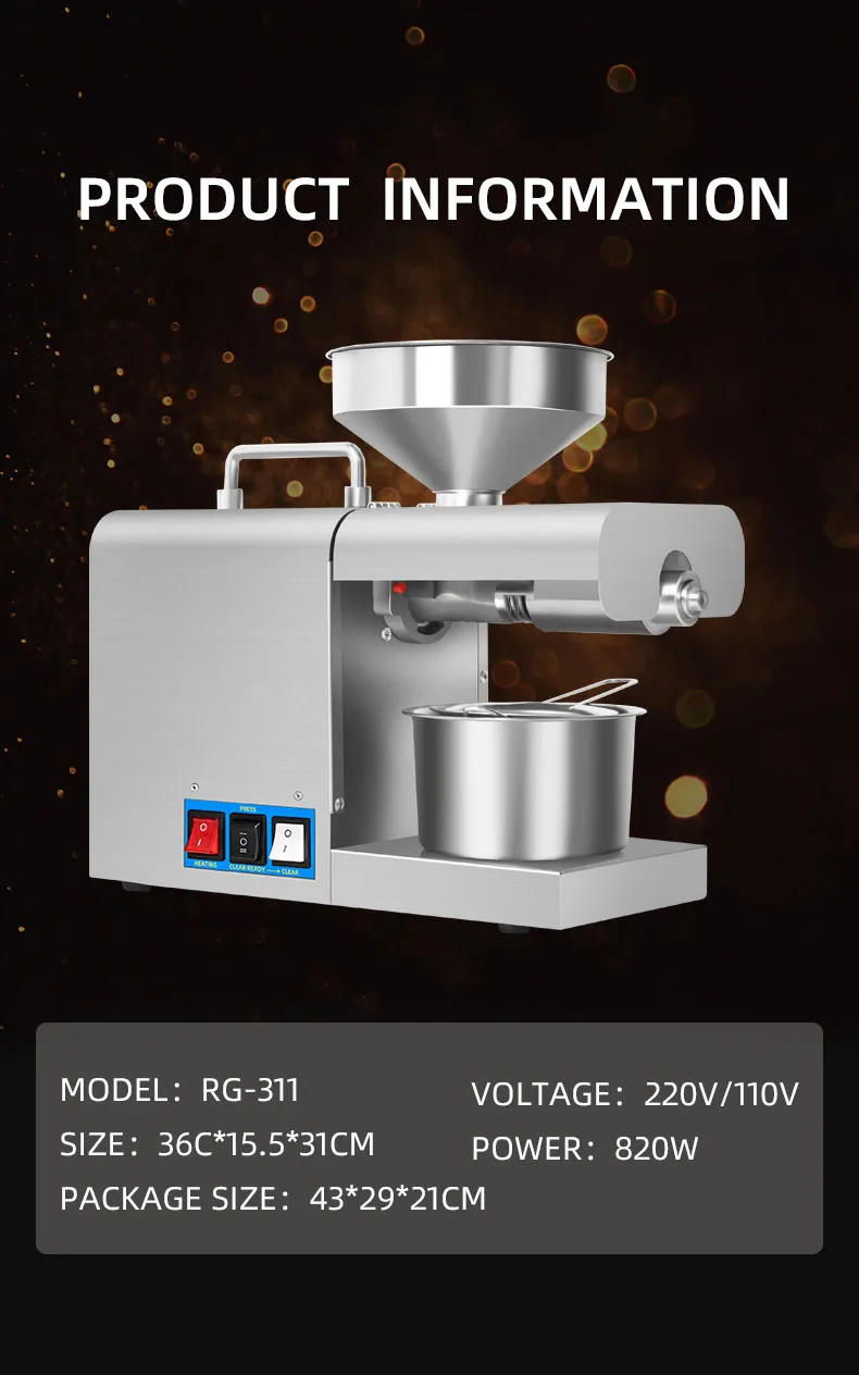 SUNZ Stainless steel Household Commercial Oil Press machine , Cold press Linseed oil extrator presser RG-311