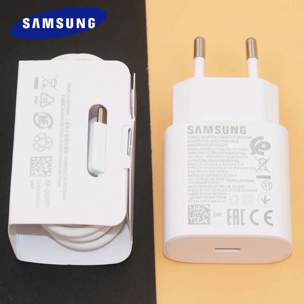 Samsung S22 S21 S20 Ultra A90 A80 S10 5G Charger Super Fast Charging 25W EP-TA800 PD Adapter For Galaxy A53 A33 A52 Type C Cable