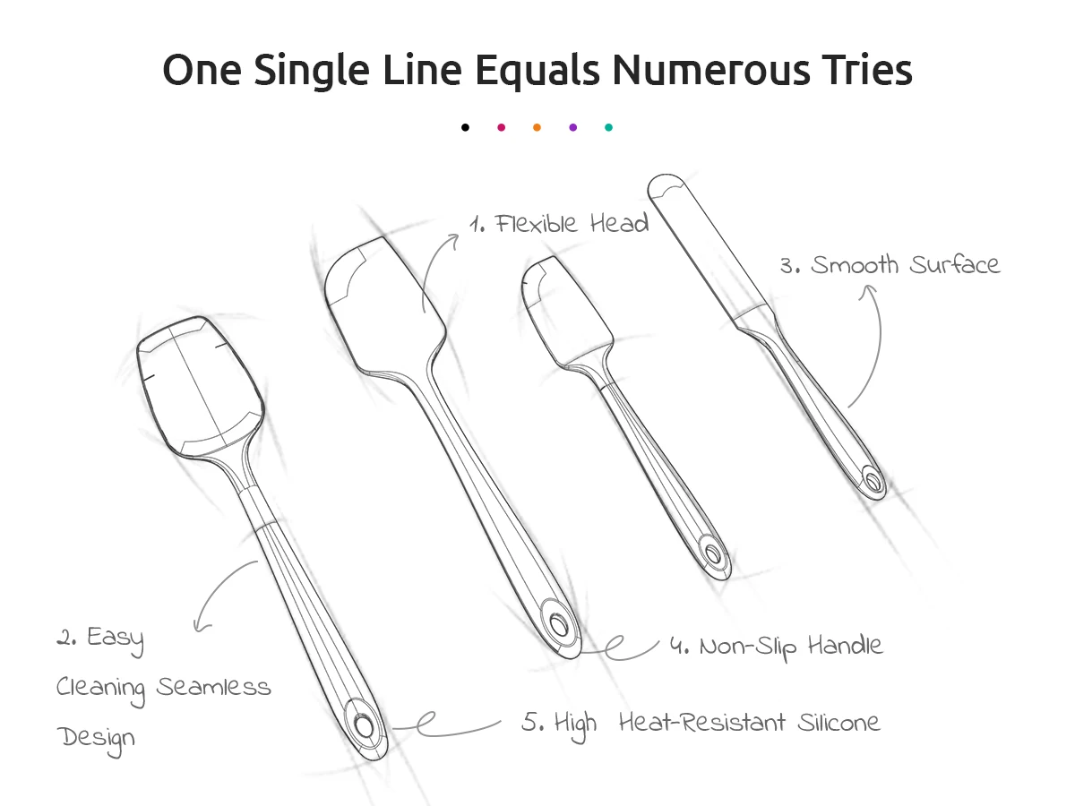 ⑤Practical Radian of Silicone Head:scraping the egg liquid along the inner wall of mixing bowl cleanly