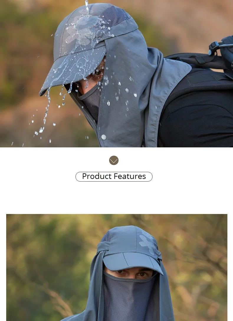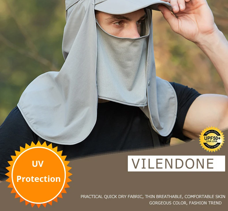 | Male Sun Hat With Face Neck Flap | UV Protection Baseball Cap |