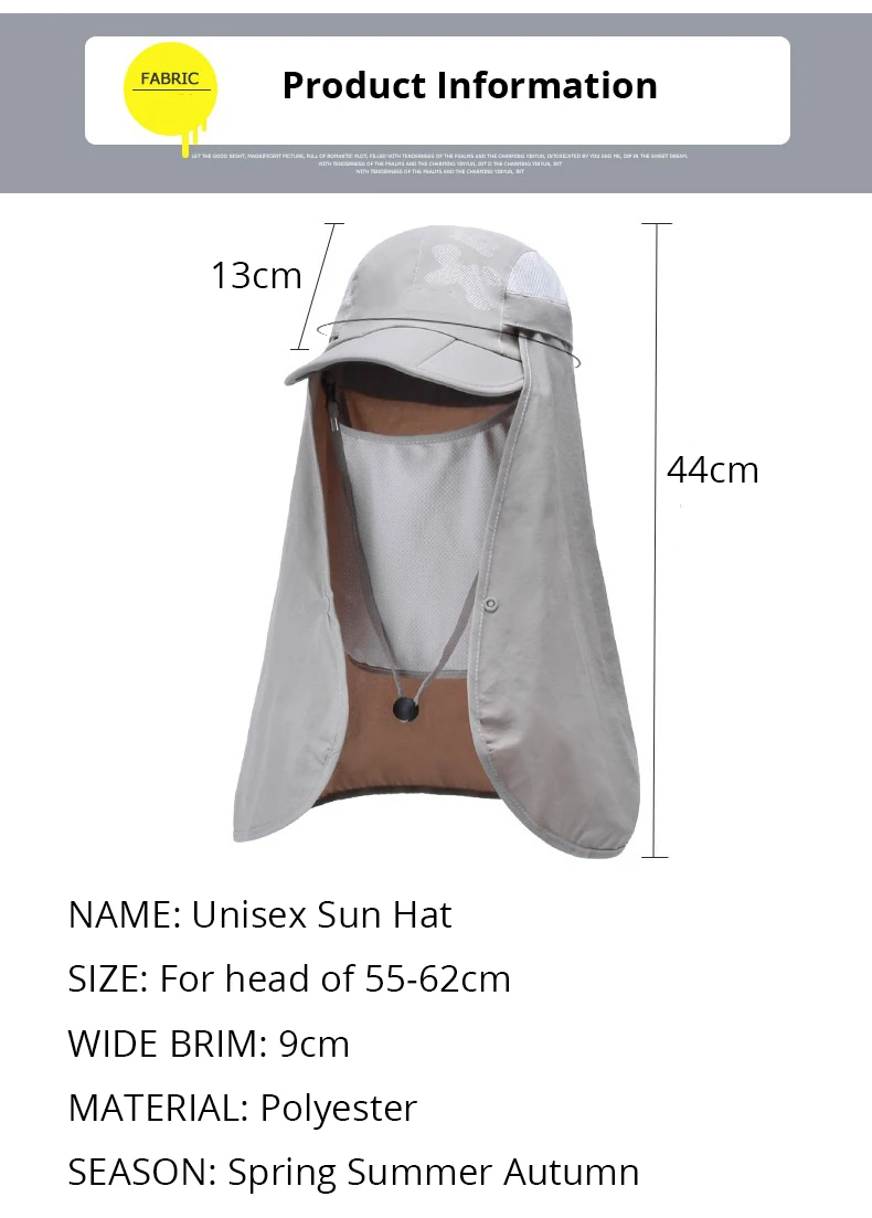 Autumn Summer UV Protection Sun Hat For Women Men Foldable Quick Drying Waterproof Baseball Caps Male Neck Flap Hiking Fishing Hats
