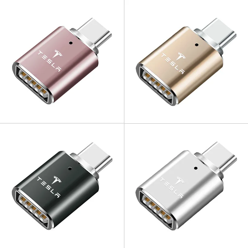 Tipo c otg macho para usb fêmea adaptador conversor conector para tesla modelo 3 modelo s modelo x modelo y roadster bonina bobina