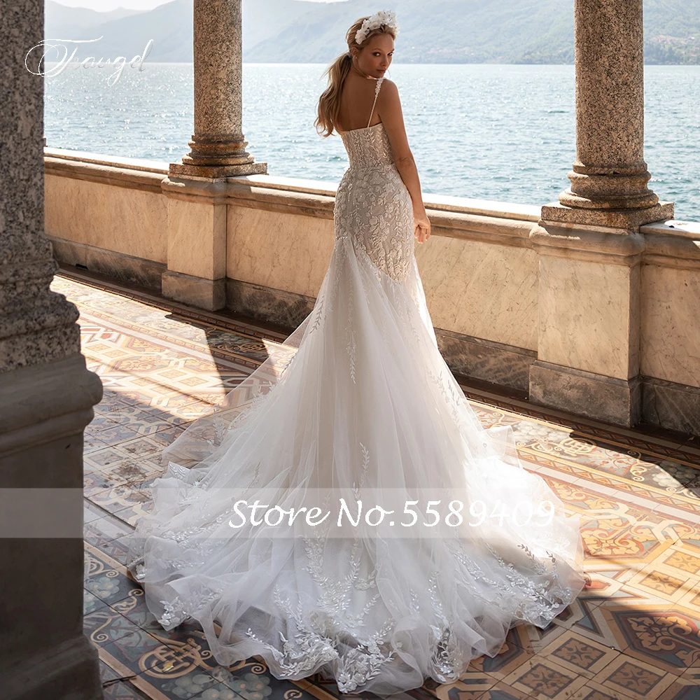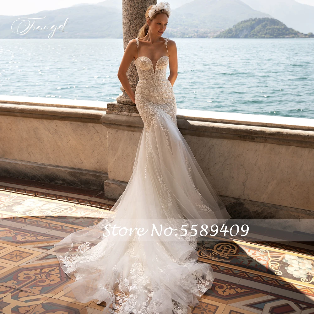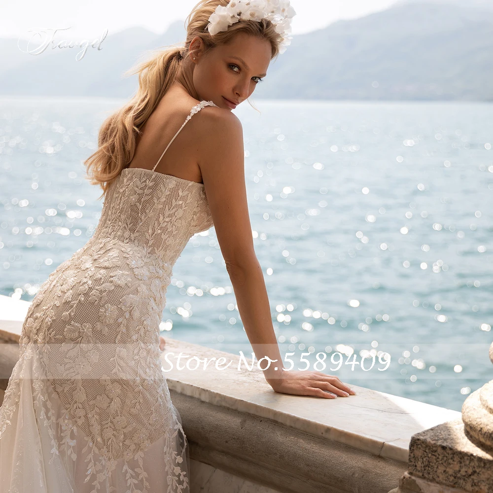 Traugel Sexy Sweetheart Backless Lace Mermaid Wedding Dresses Exquisite Spaghetti Straps Appliques Beaded Trumpet Bridal Gown