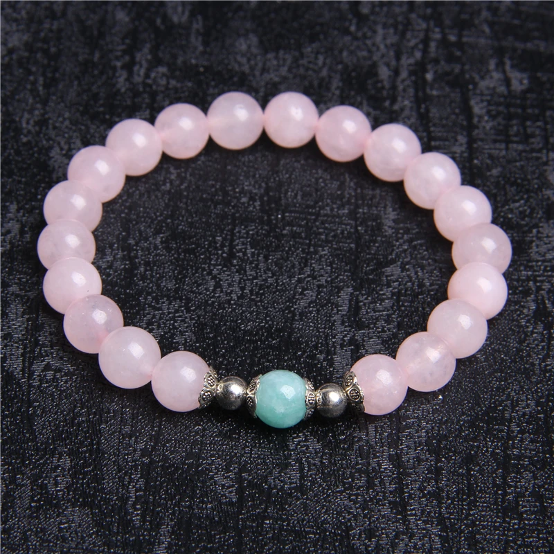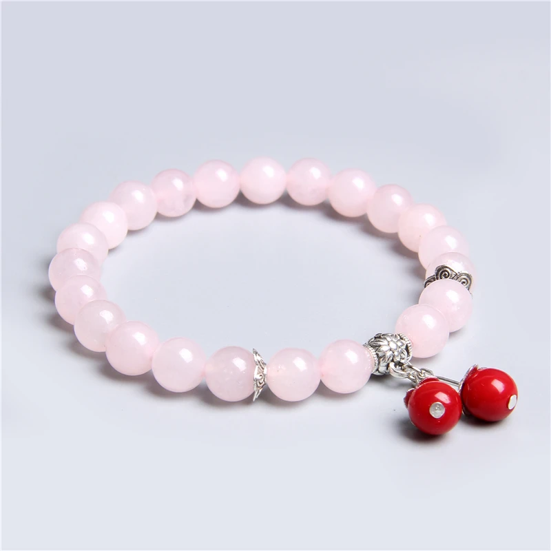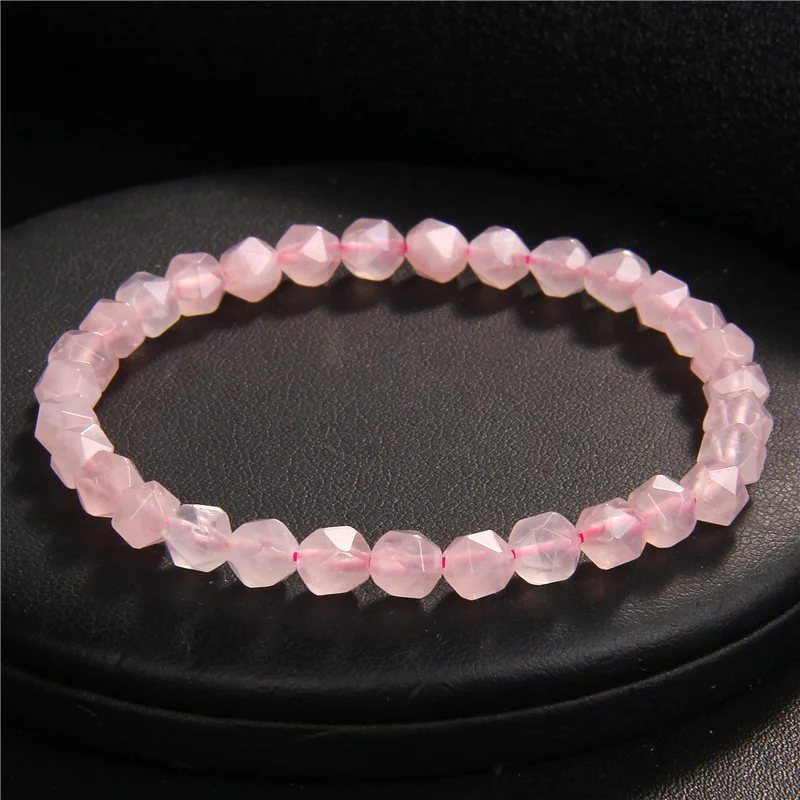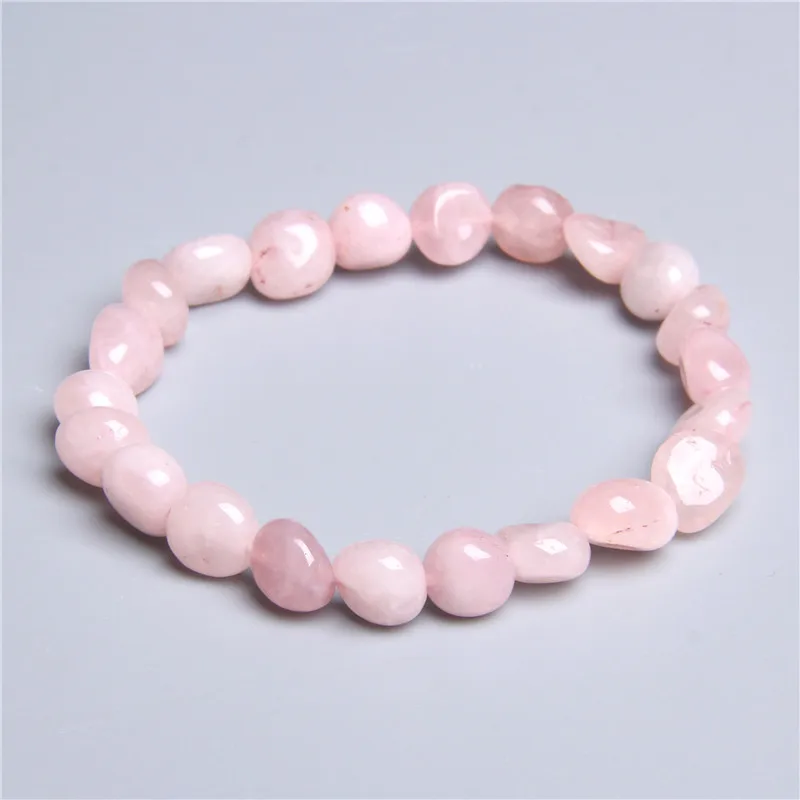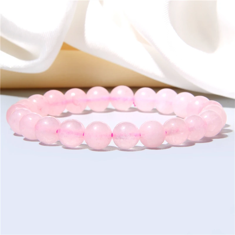 Trendy Rose Quartzs Bracelet Pink Crystal Beads Bracelets Stretch Natural Stone Charms Bangles Healing Women Jewelry Reiki Gift