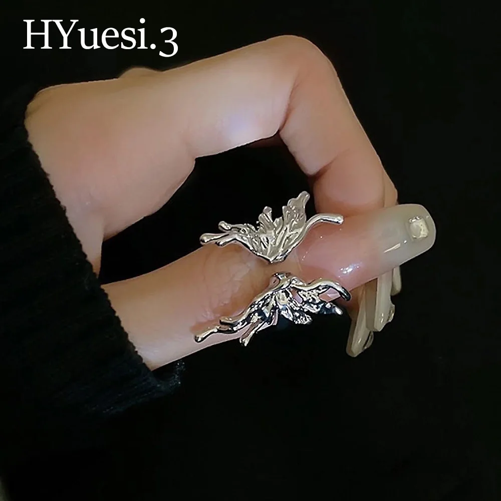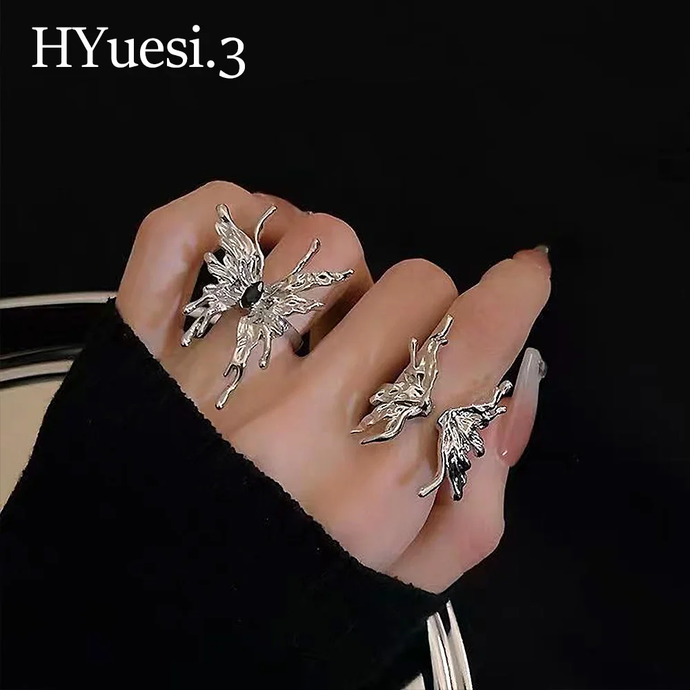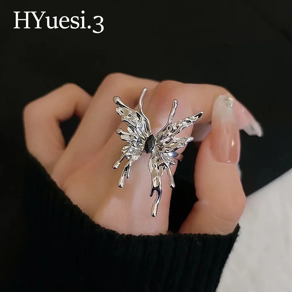 Vintage Liquid Shape Butterfly Ring Punk Style Adjustable Size Opening Metal Irregular Butterfly Rings For Women Jewelry Gifts