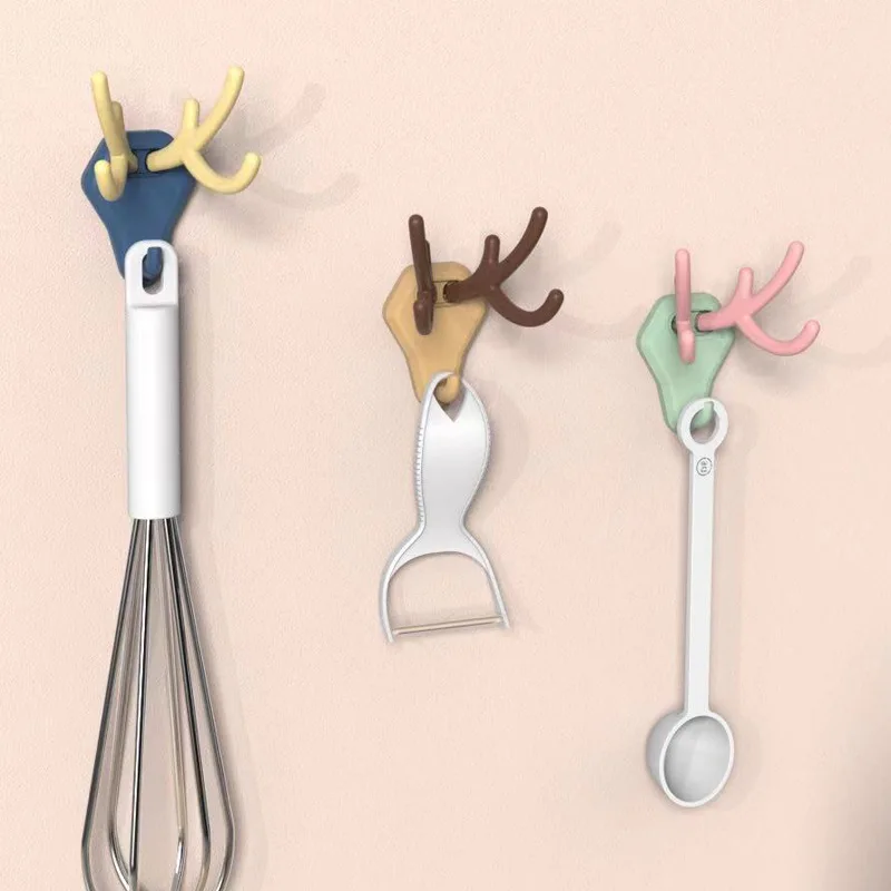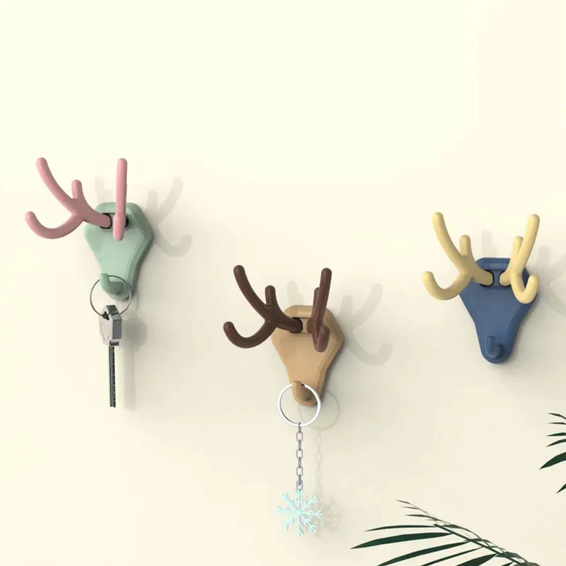 Wall Hanging Key Hanger Hooks Adhesive Coat Hook Deer Head Antlers Display Racks Keys Hang On The Wall Storage Hangers