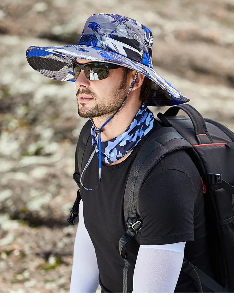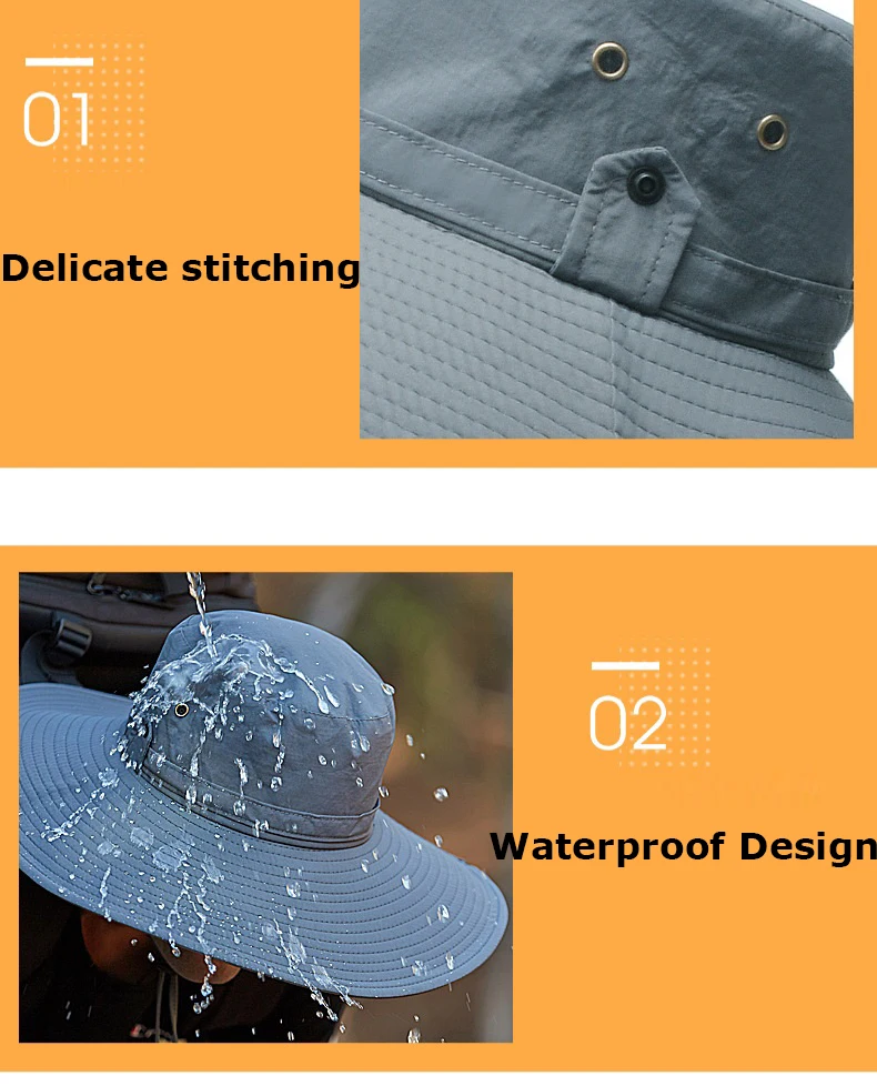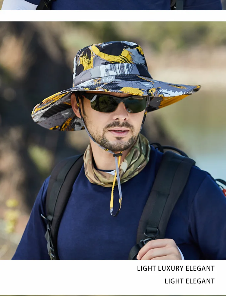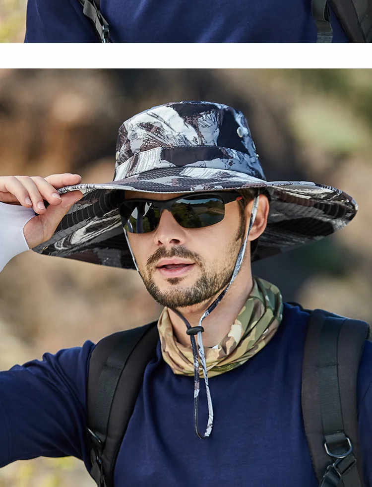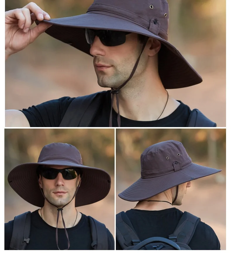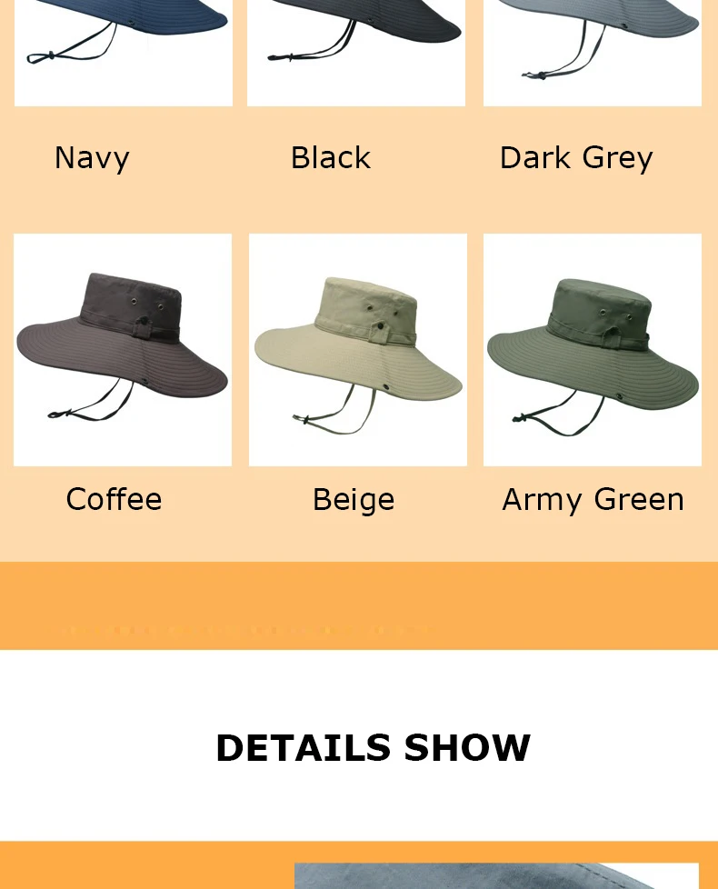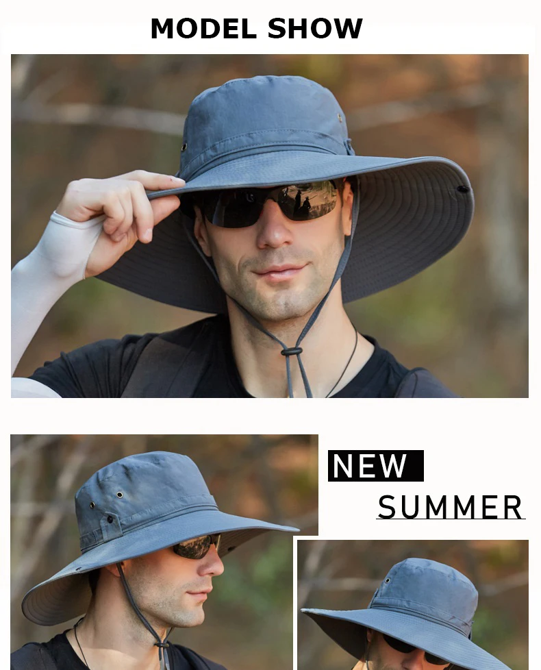 Waterproof Buckets Hat For Men Summer UV Protection Sun Hat Long Wide Brim Boonie Caps Male Outdoor Hiking Fishing Cap