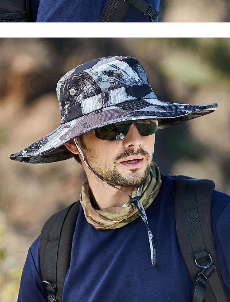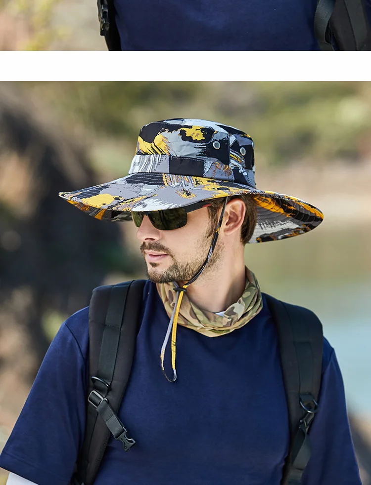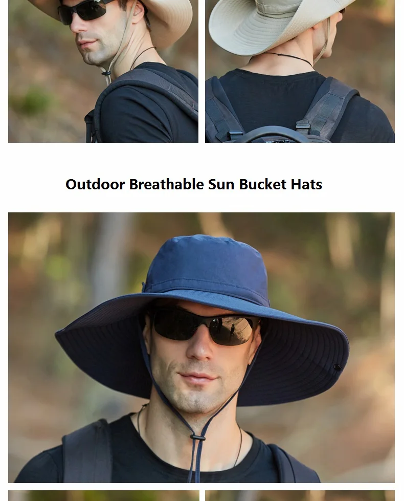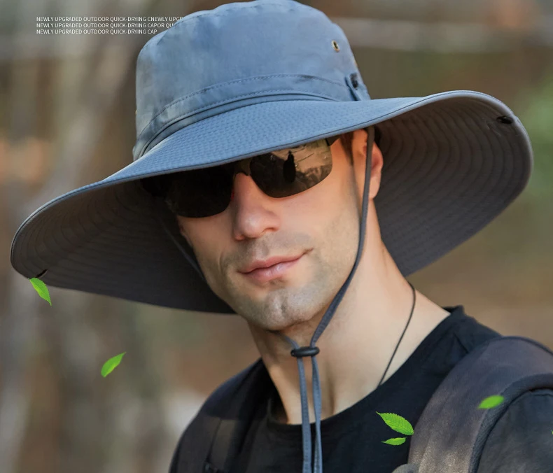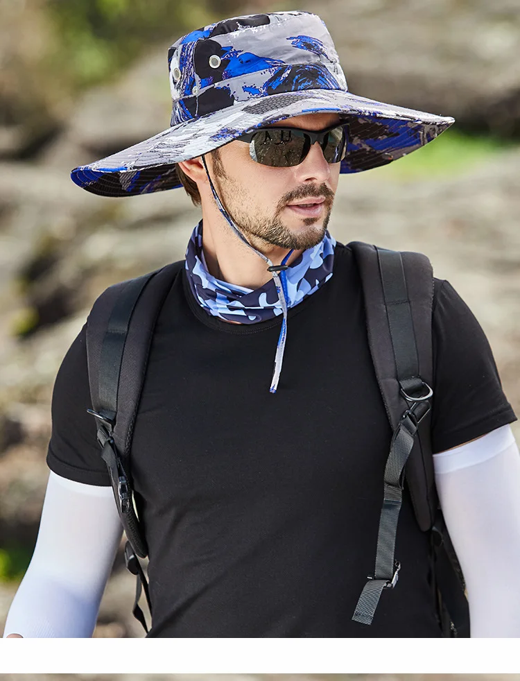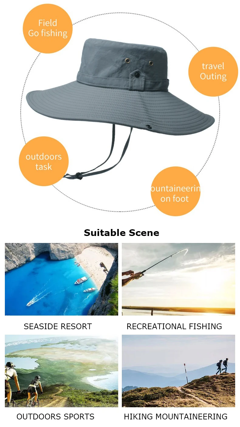 Waterproof Buckets Hat For Men Summer UV Protection Sun Hat Long Wide Brim Boonie Caps Male Outdoor Hiking Fishing Cap