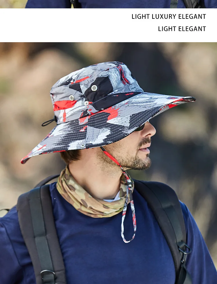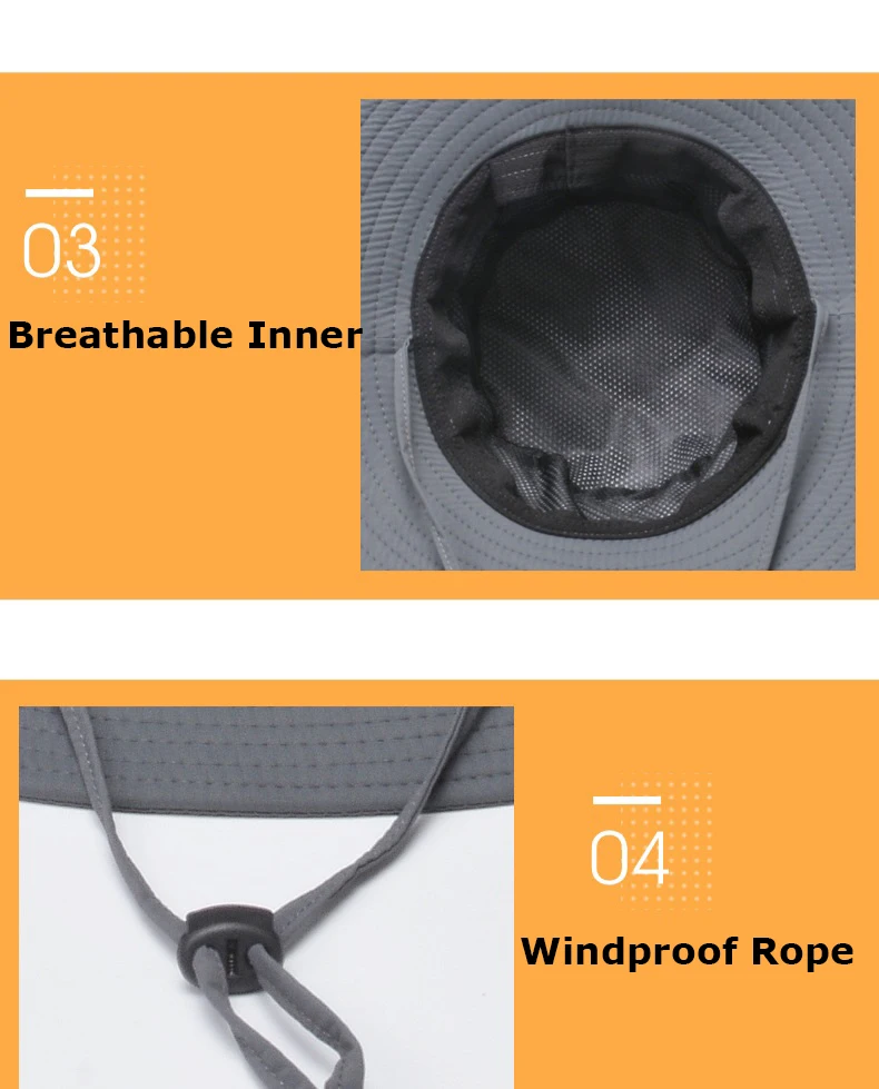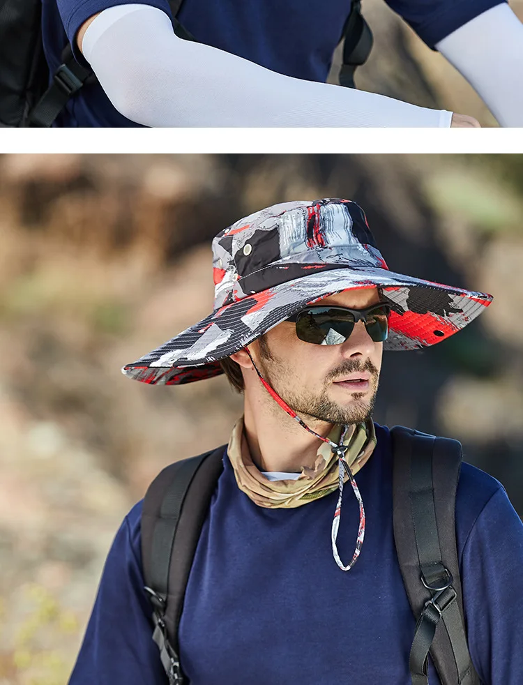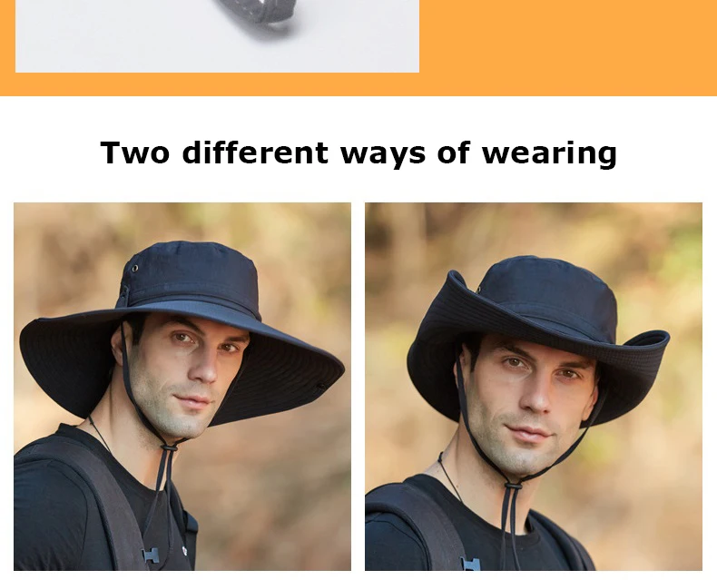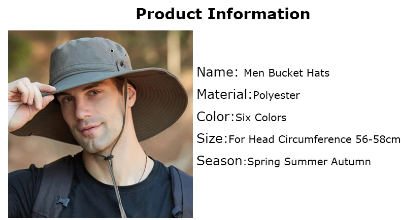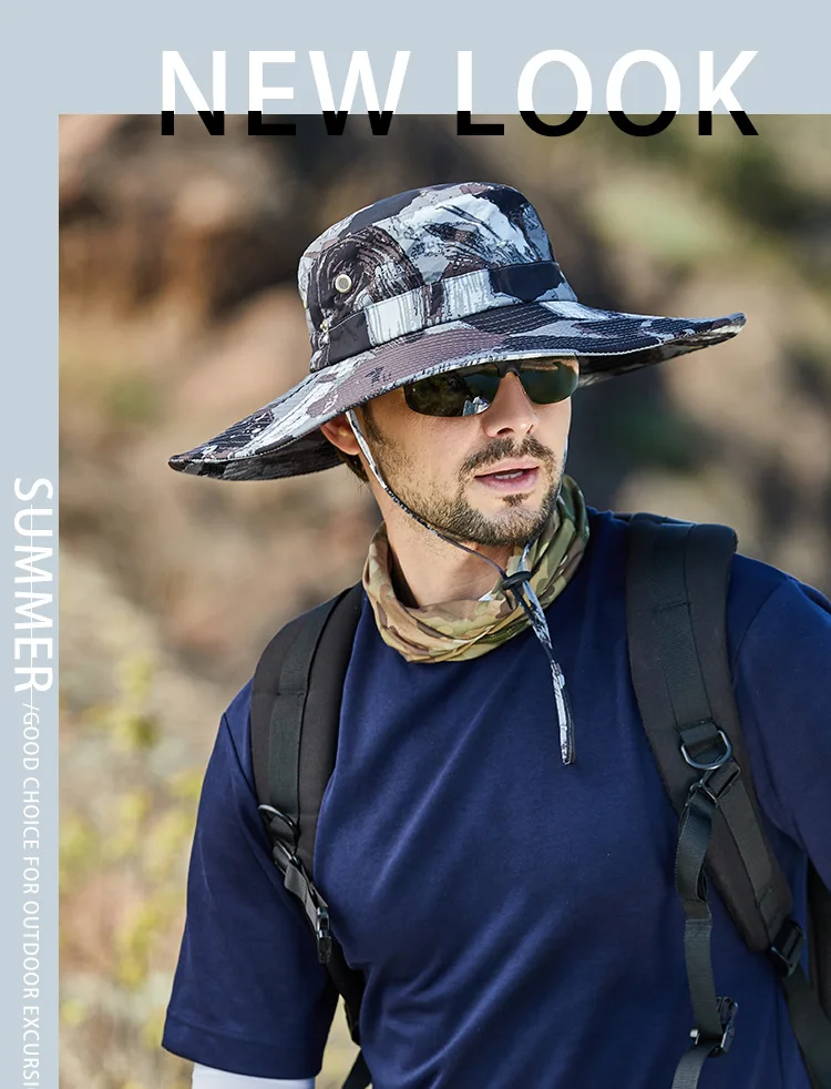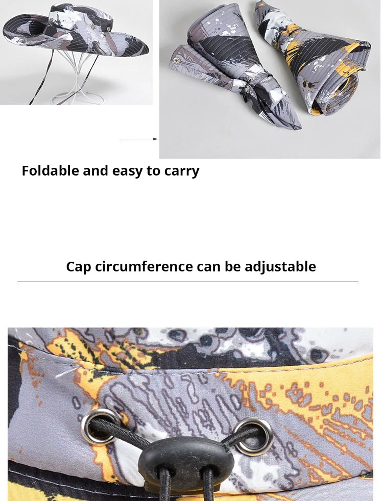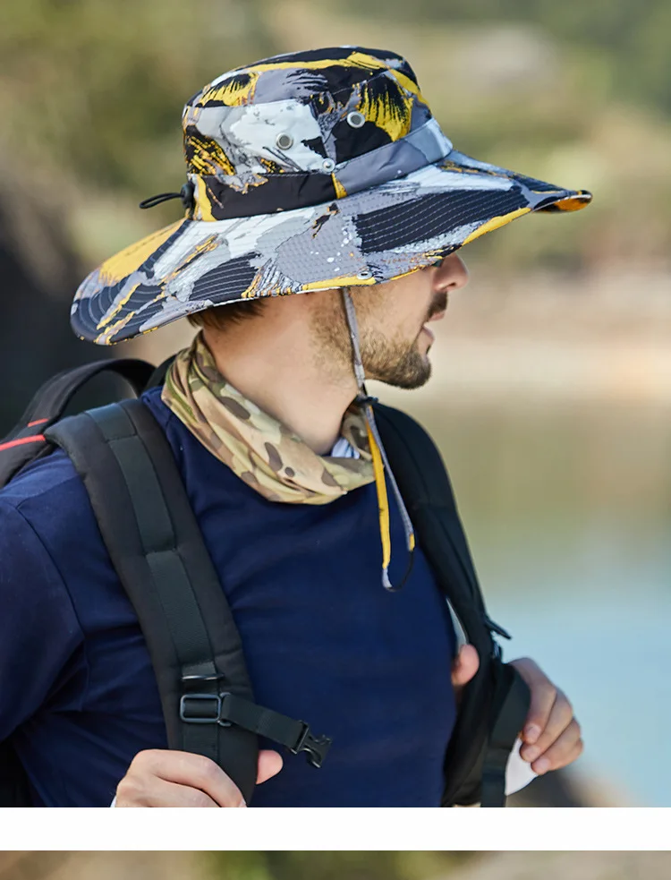 Waterproof Buckets Hat For Men Summer UV Protection Sun Hat Long Wide Brim Boonie Caps Male Outdoor Hiking Fishing Cap