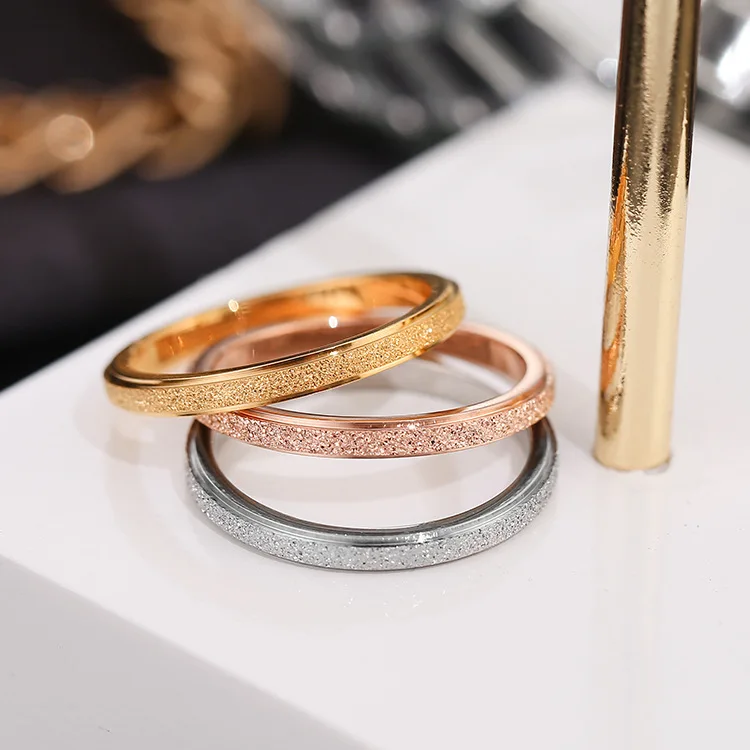 Wholesale High Quality Fashion Simple Scrub Sandblast Steel Women's Rings Width Finger Gift for Girl Jewelry