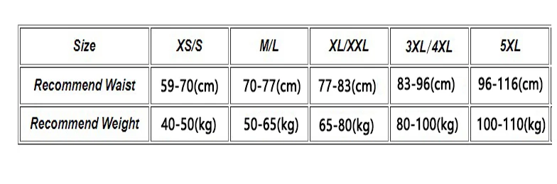 | Recommend Waist | 45-65(cm) | 64-80(cm) | 80-100(cm) | 100-120(cm) | 120-135(cm) | 135-155(cm) |