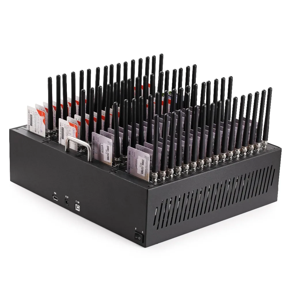 The device built-in 64 wireless modules can be inserted 64 SIM cards, can use 64 cards to send text messages, send speed as 64 times as a single channel modem. It uses the development of MTK module, 220V power supply, can be a long time stability, generous luxury housing.Main features:1, industrial-grade chips, to ensure stable operation2, switch independence, support for the size of SIM card
